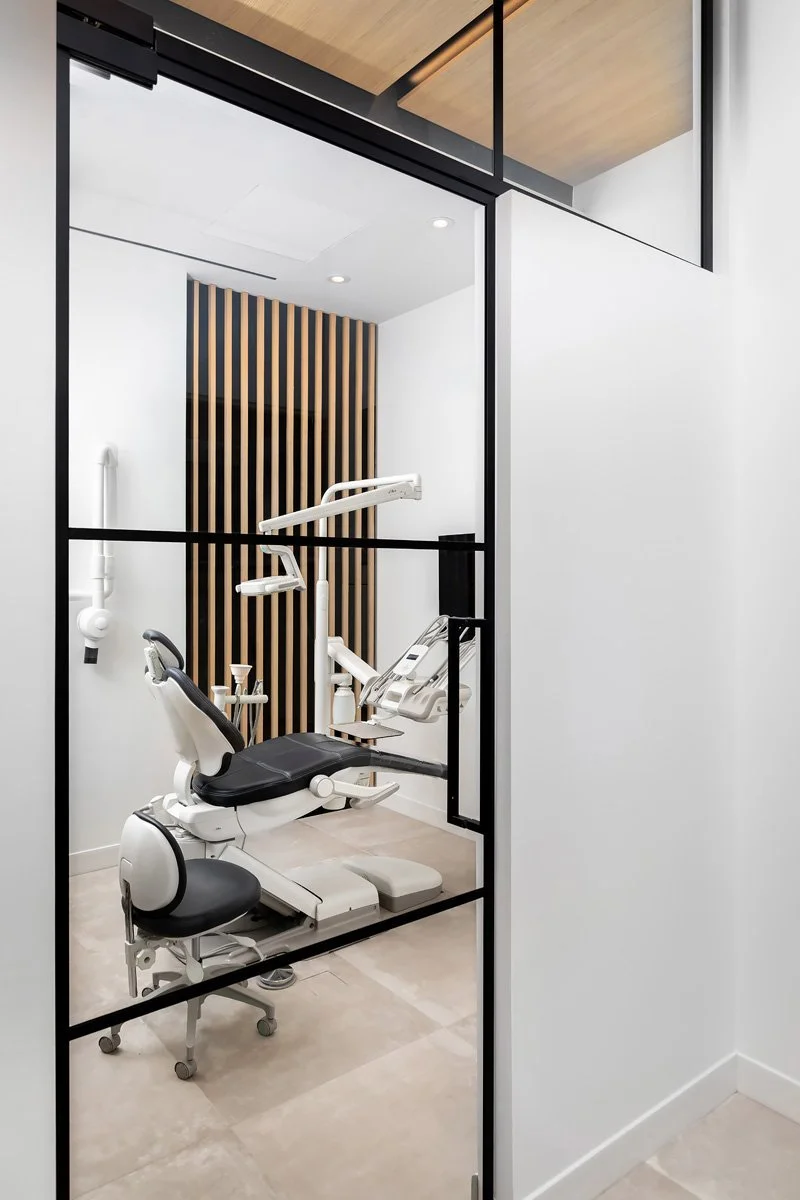 In order to adapt to the existing conditions of the space and meet our client’s expectations we had to get very creative. The aim was to create a welcoming and memorable space where community can gather, while also having transparency between public and private allowing the dentist to showcase his state of the art technology and equipment.